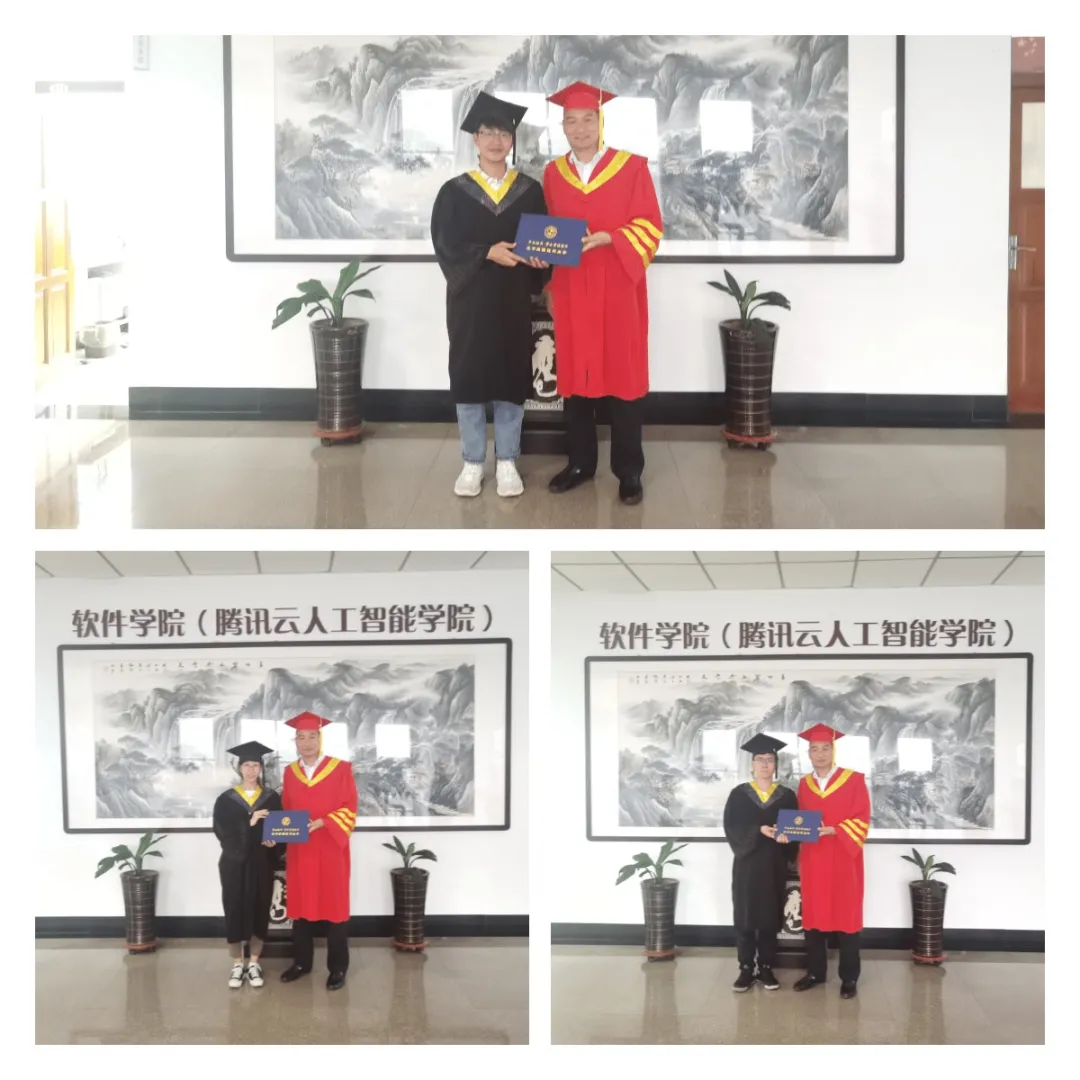 )院长沈学利为毕业生颁发学位证书并合影留念。
