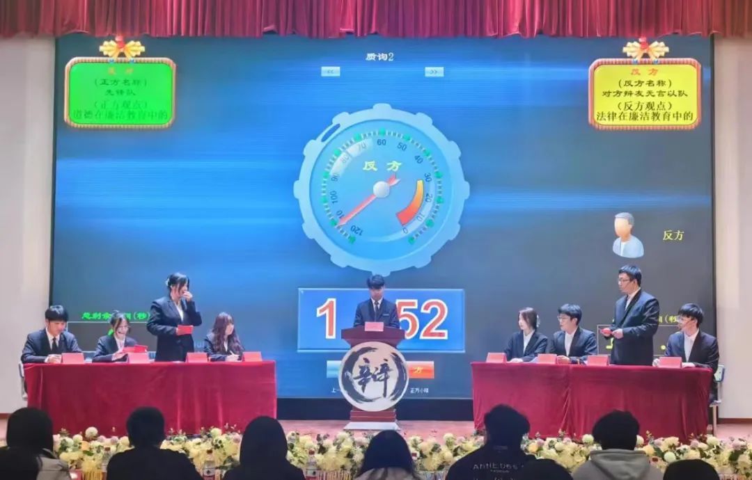 本次辩论赛分为两组,辩手们分别针对“碎片化阅读利于积累经验,还是不利于积累经验”及“道德在廉洁教育中的作用更大,还是法律在廉洁教育中的作用更大”两个辩题展开辩论。